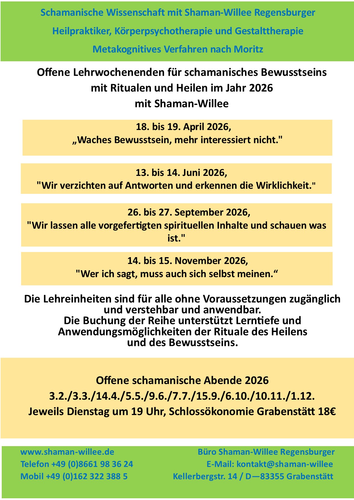 Offene Abende und schamanische Bewusstseinsseminare 2026 Willee2026-01-14T09:51:30+01:00 Teilen Sie diesen Artikel! FacebookTwitterRedditLinkedInTumblrPinterestVkE-Mail Ähnliche Beiträge neuer Filmbeitrag über meine schamanische Arbeit im RFO Gebet Hinterlasse einen Kommentar Antworten abbrechenKommentar Δ Diese Website verwendet Akismet, um Spam zu reduzieren. Erfahre mehr darüber, wie deine Kommentardaten verarbeitet werden.